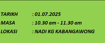 TUJUAN Membantu memberikan pengetahuan yang baru tentang menjaga kesihatan AKTIVITI Petugas NADI mempelawa mereka yang berminat untuk mengikuti aktiviti ini dan penyertaan adalah terbuka kepada peserta 13 tahun ke atas.