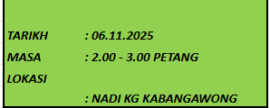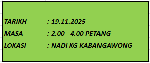 TUJUAN Membantu komuniti yang berumur 13 tahun untuk menambah pengetahuan dengan mengikuti kelas yang diadakan secara LIVE. Program ini dapat membantu pelajar yang ingin belajar dengan mengikuti kelas AKTIVITI Aktiviti ini dilaksanakan melalui atas talian dan penyertaan adalah terbuka kepada […]